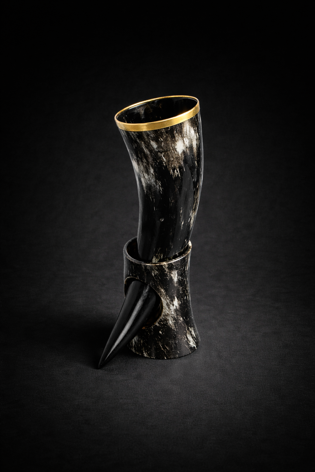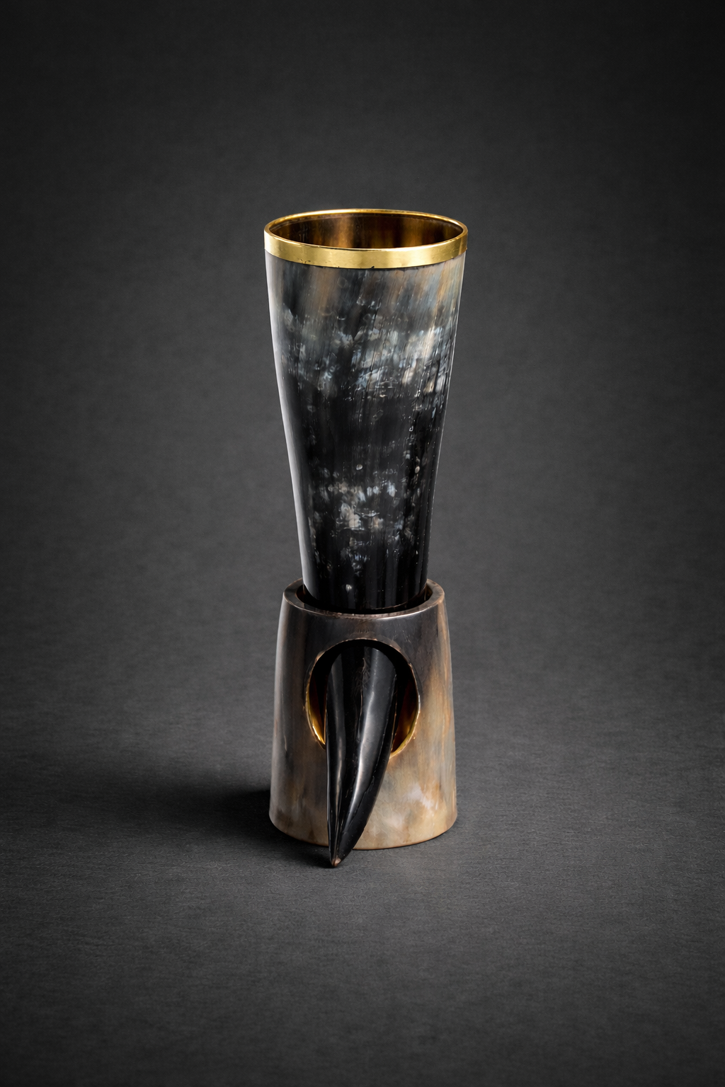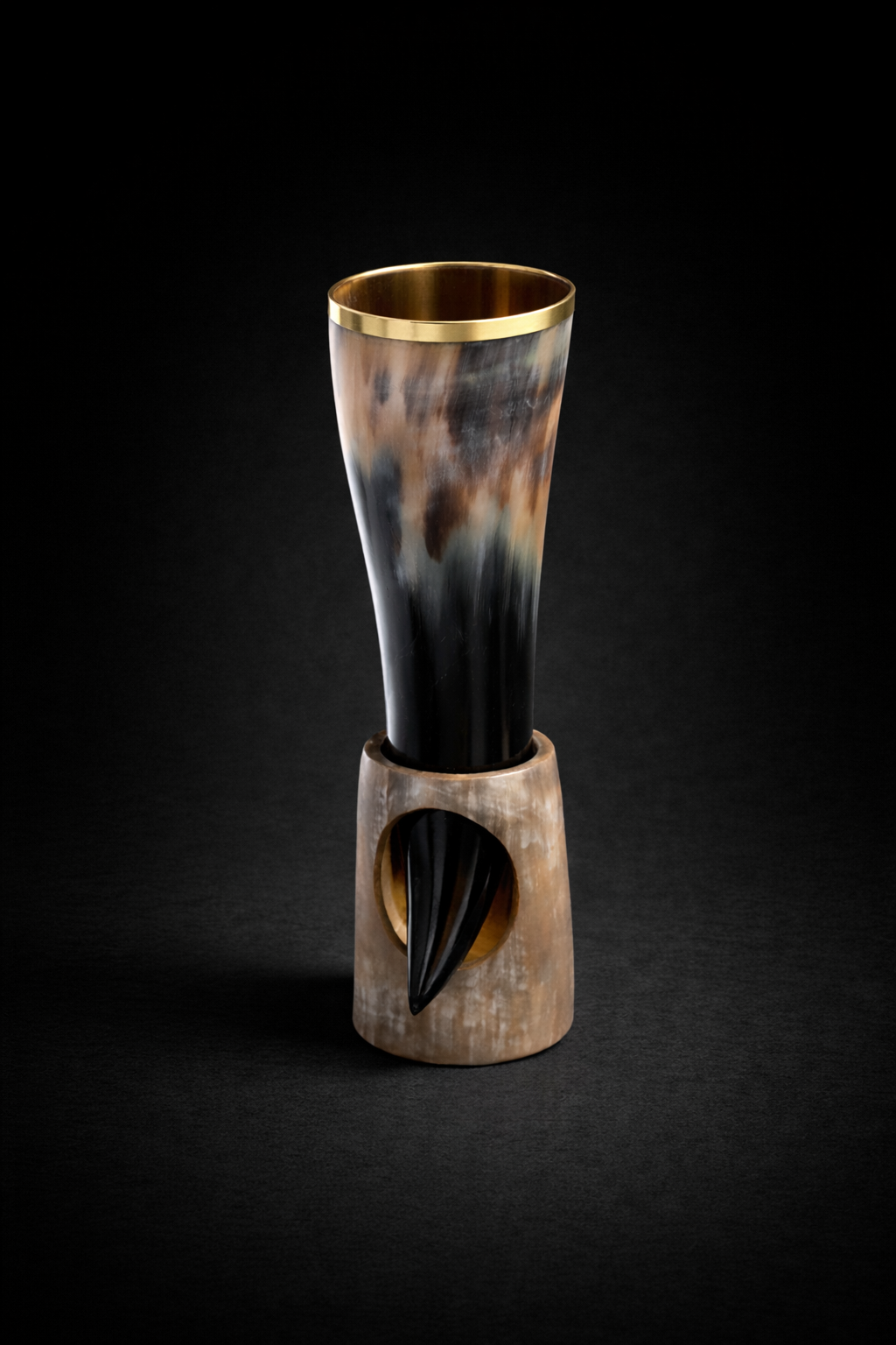 Paharul Premium Nevi din Corn de Bivol cu Suport și Finisaj Auriu – Artizanat și Rafinament la superlativ