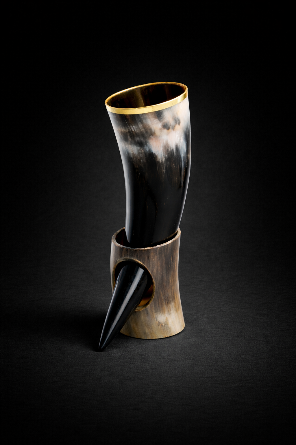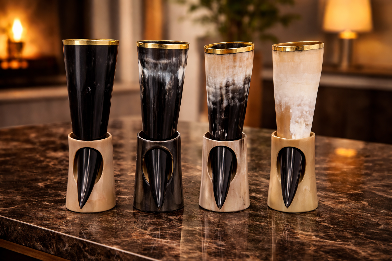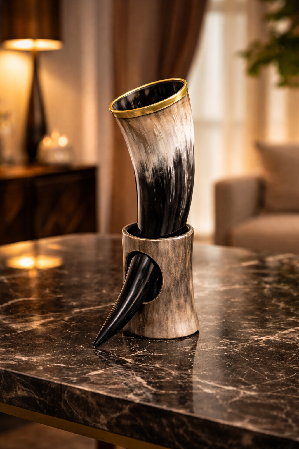 Paharul Premium Nevi din Corn de Bivol cu Suport și Finisaj Auriu – Artizanat și Rafinament la superlativ