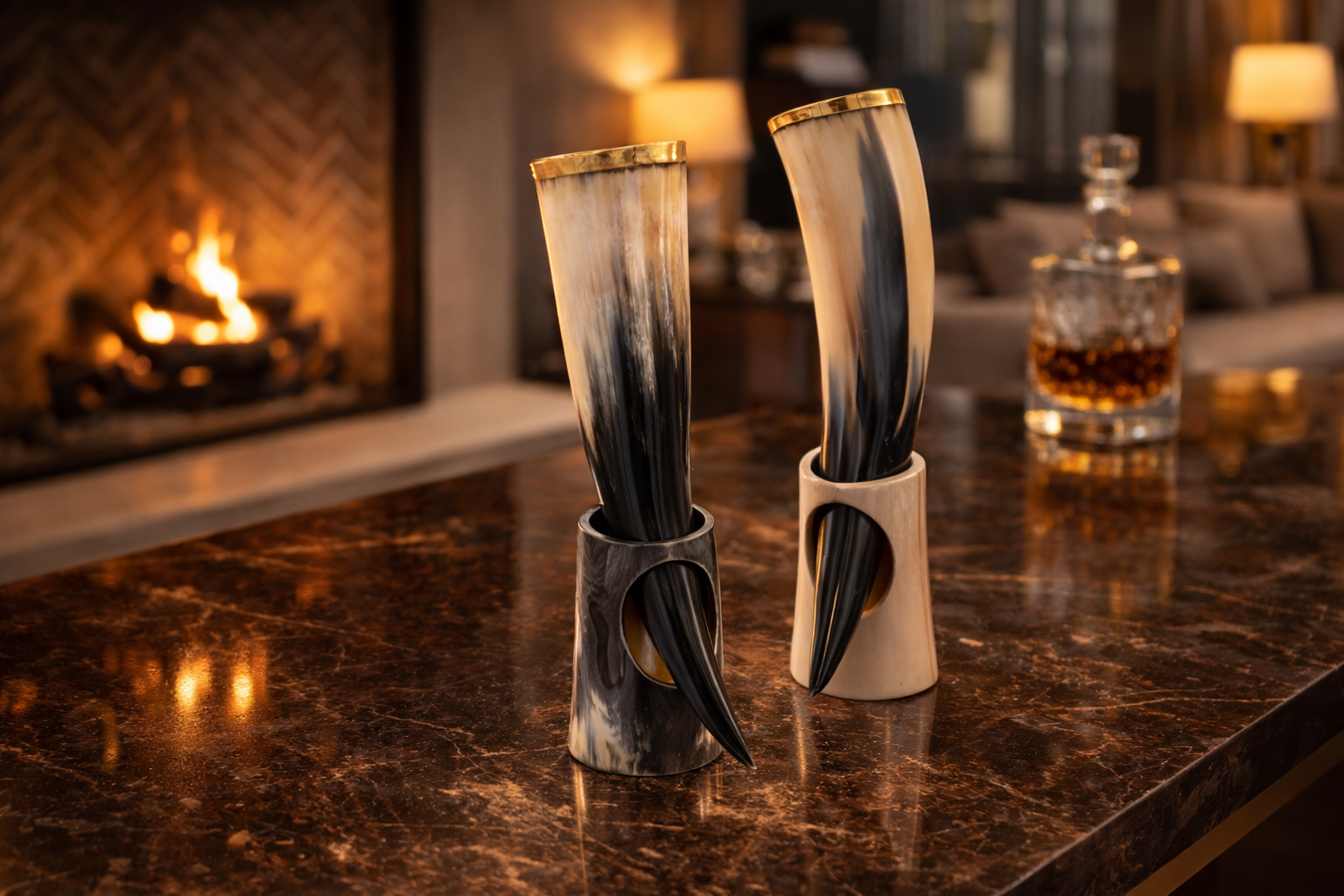 Procesul de prelucrare manuală păstrează frumusețea naturală a cornului și transformă fiecare pahar într-un obiect special, realizat cu atenție la detalii și respect pentru materialul natural.