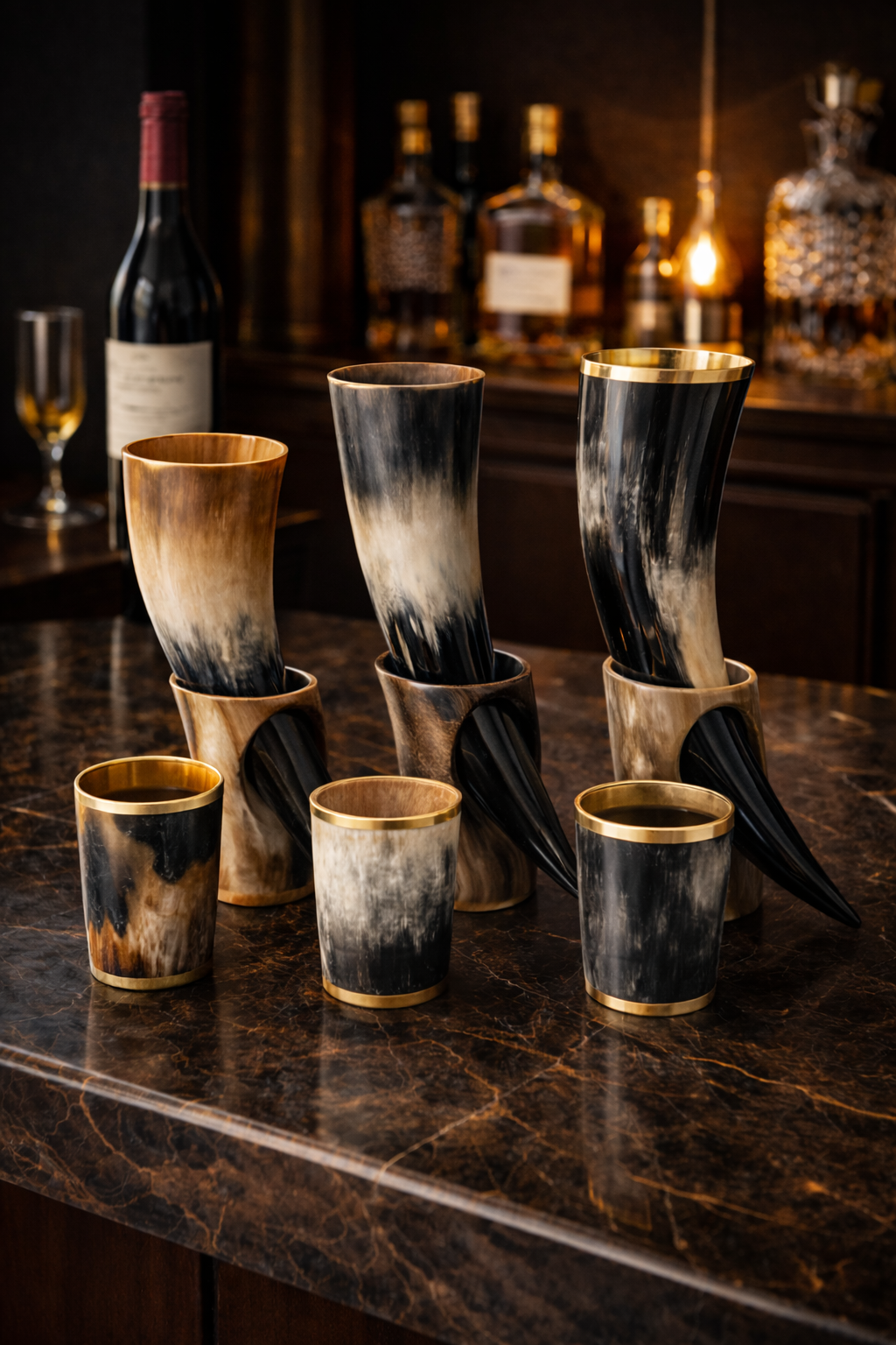 Setul de 6 pahare Nevi din corn natural de bivol – detaliul care schimbă atmosfera unei mese